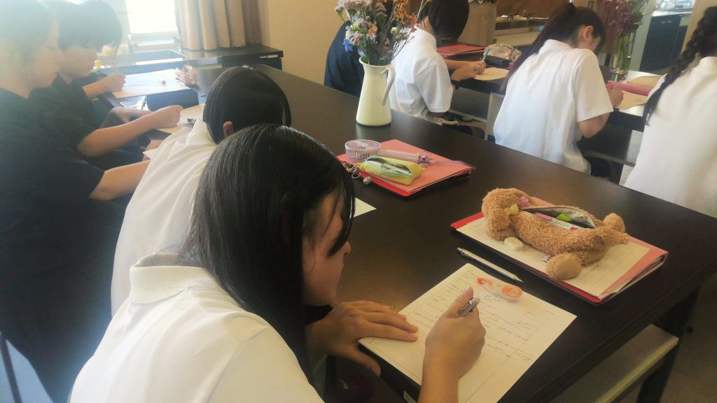 「温かな気持ちの循環」という言葉を聞いて、これは私たちも行動できると感じました。たとえば友達の相談に乗る、困っている人を助ける、そうすることで誰かが安心できるような場所を作りたいです。人につなげるということはなかなか難しいけれど、自分が友達の心に寄り添うことで相手の気持ちが軽くなれば、相手も「私は相談したら心が落ち着いた、だから私も人を助けよう」という気持ちになるのではないかと感じました。また、子ども食堂での活動を聞いて、自分の将来の夢と重なるところがありました。最近やっと自分のなりたいものが固まってきたので、この講座で学んだ子ども支援の方法、子どもに寄り添う心を忘れず、これからの進路につなげていきたいと思いました。
