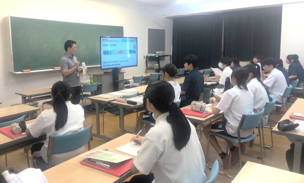 令和7年9月8日(月)、1年生の「産業社会と人間」の「社会探究」の単元の学びの一環として、外部講師をお招きしての講座を実施しました。SDGsや社会課題について、ネットなどで見聞きするだけでなく、解決に取り組む地域の活動諸団体から直接話を聞いて「他人ごとではなく自分ごと」としてとらえていくことをねらいとしています。生徒は、環境、福祉・健康、国際理解、エネルギー、産業・経済、地域振興、防災、子ども・教育の8つのテーマの中から1つを選び、関連の深い活動をしている講師の講座に参加しました。