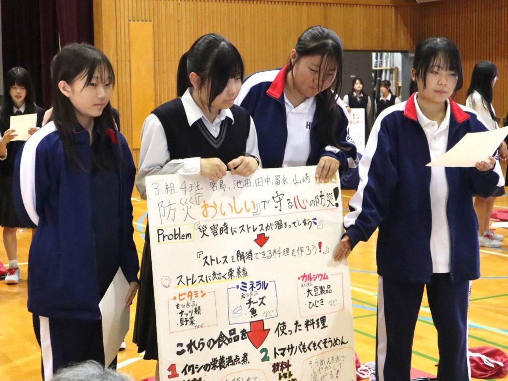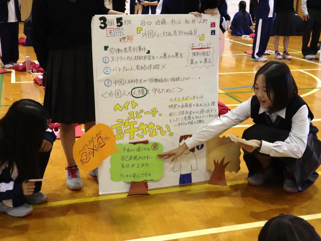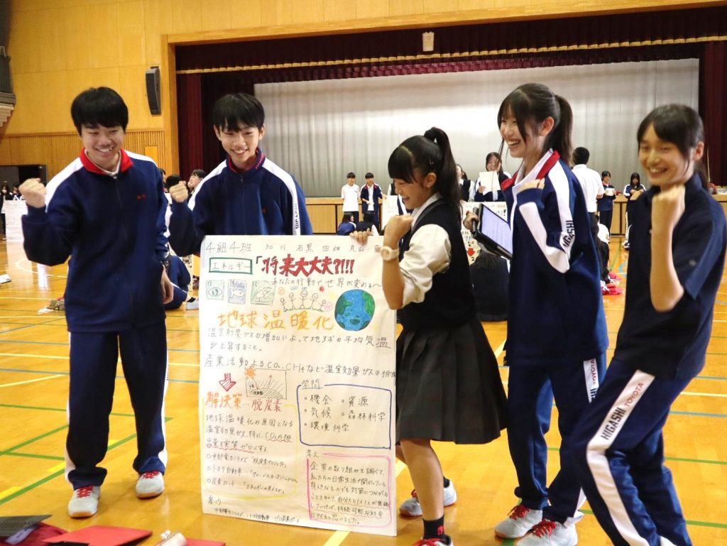 牛田一成先生(中部大学)の「SDGs・ユネスコスクール」についての講演を7月に聞き、17項目あるSDGsのゴールに向けて、日本や世界の現状で今の自分たちにできることを考える活動を行ってきました。また9月には、SDGsや社会課題について、解決に取り組む地域の活動諸団体から直接お話を聞いて「他人ごとではなく自分ごと」としてとらえていくことを学びました。