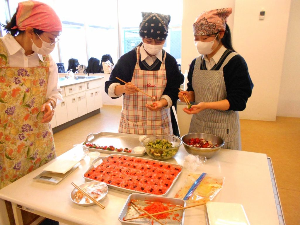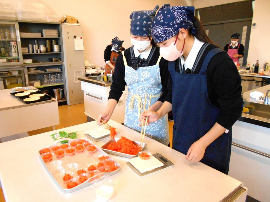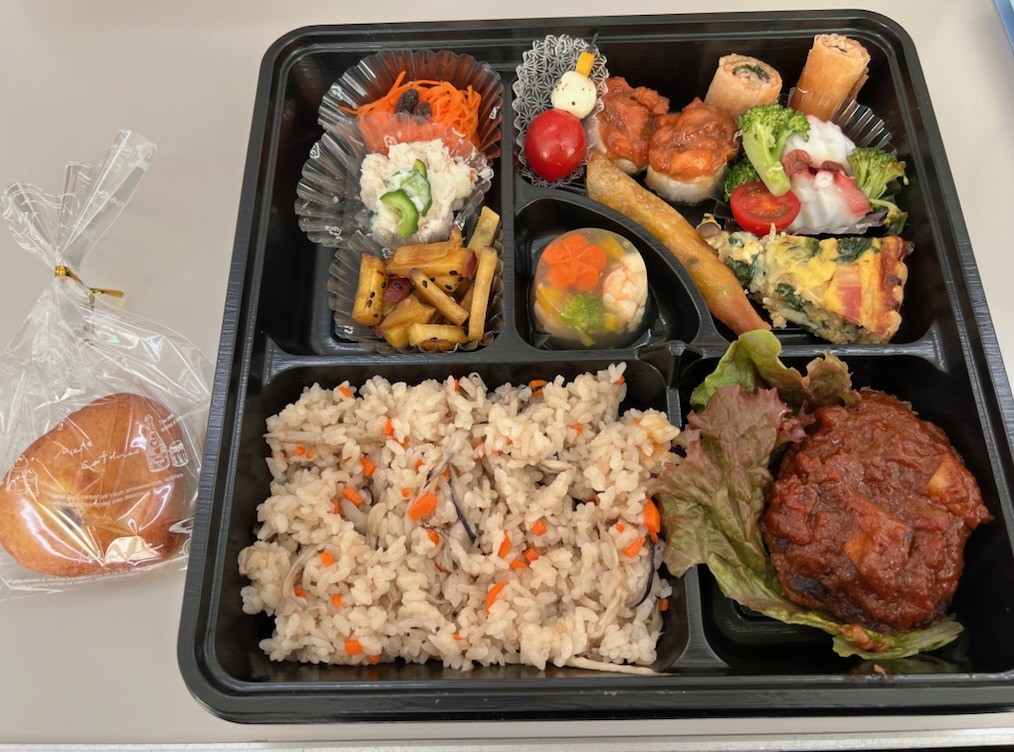 私たち調理・栄養プランは先生方にお弁当作りをしました。お弁当の箱や具材も全て一から私たちが考えるので、どうしたら先生方が喜んでくれるのか考えるのが大変でした。