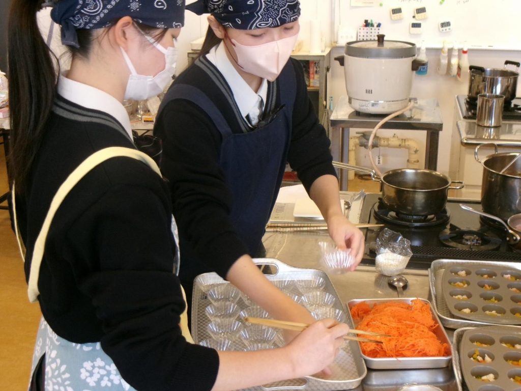 お弁当を販売して先生方からご好評の言葉を頂いたので頑張った甲斐がありました。調理・栄養プランみんなでお弁当実習ができたので良かったです。