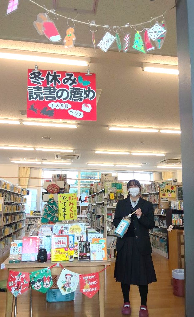 令和7年12月2日(火)から23日(火)まで、冬休みワクワク企画を図書館で実施しました。冬休み、長期貸し出しできる機会に読書を薦める意図で、図書委員が「おみくじ(大吉~残念)」を作成し、来館者に楽しんでもらいました。期間中762人の来館があり、368冊貸し出されました。