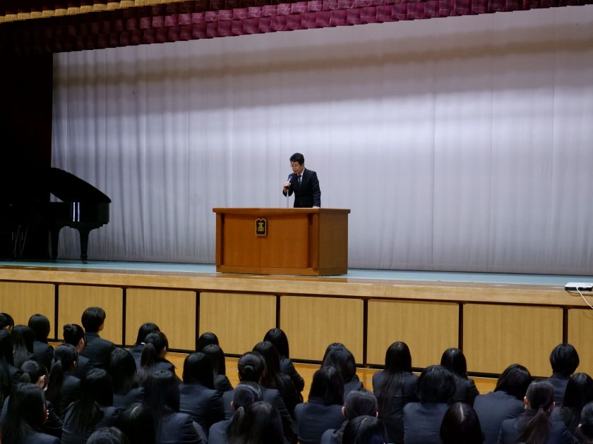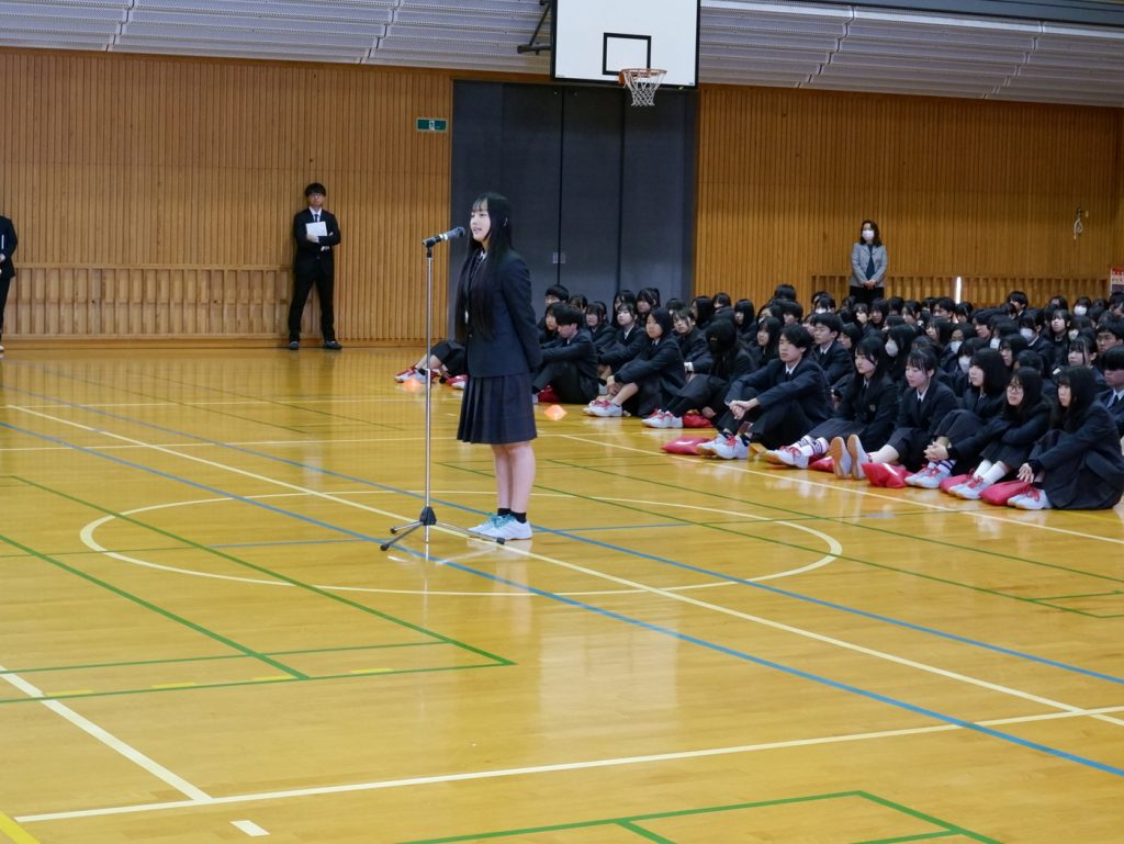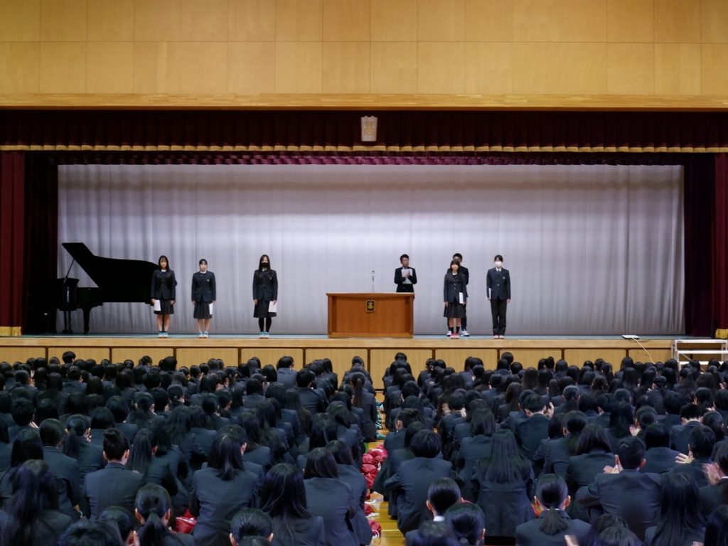 令和8年4月7日、始業式・対面式・生徒会認証式、新任式がありました。1年の始まりの式ということで、わくわくした表情で生徒らは、体育館に集まりました。