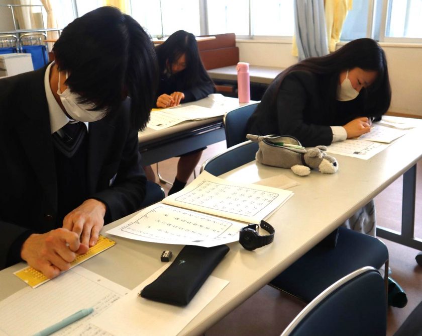 障がいを理解するための実践教室「盲導犬・点字講座」(福祉・健康プラン2年生)