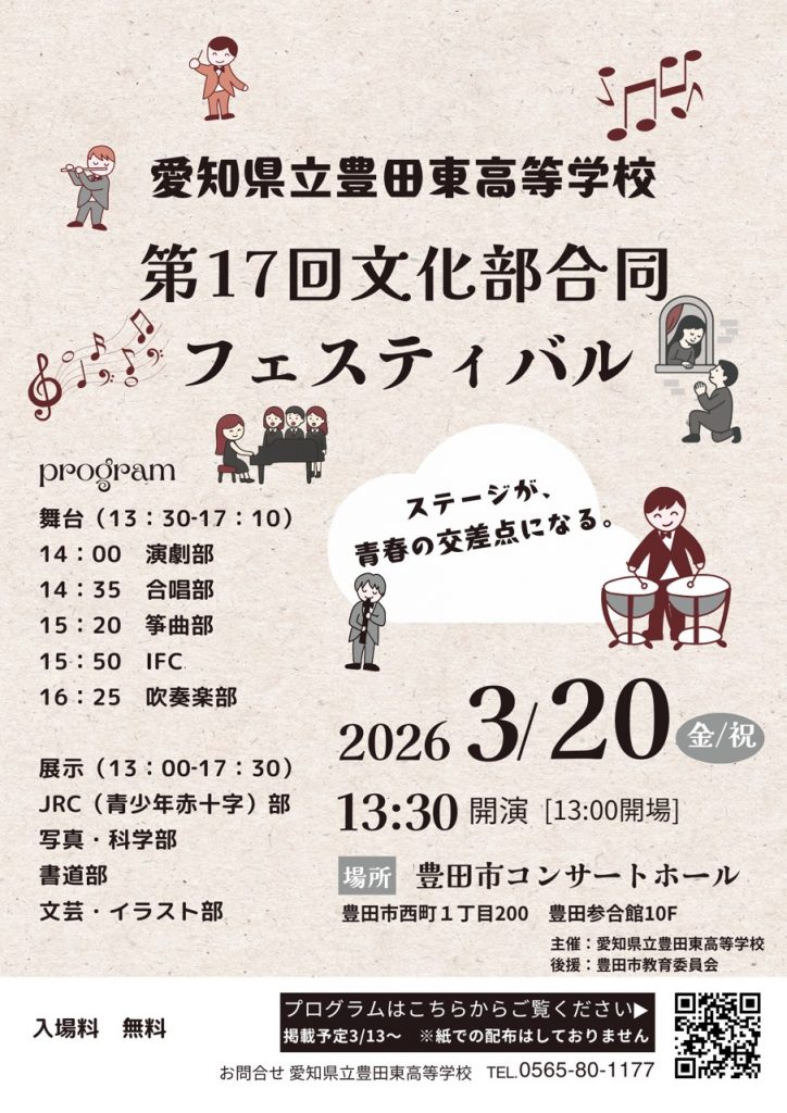 令和8年3月20日(金)、豊田市コンサートホールにて文化部の展示・発表、演奏会が行われました。御来場の皆様、ありがとうございました。