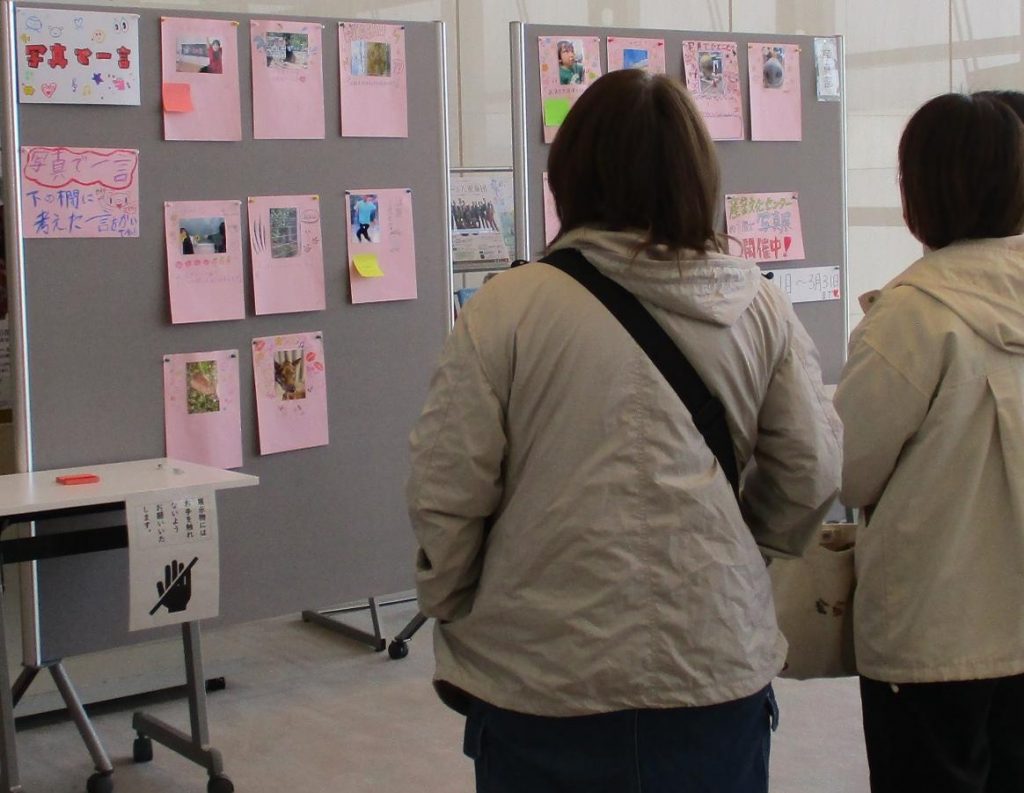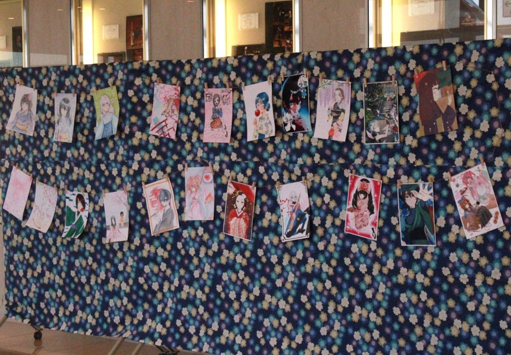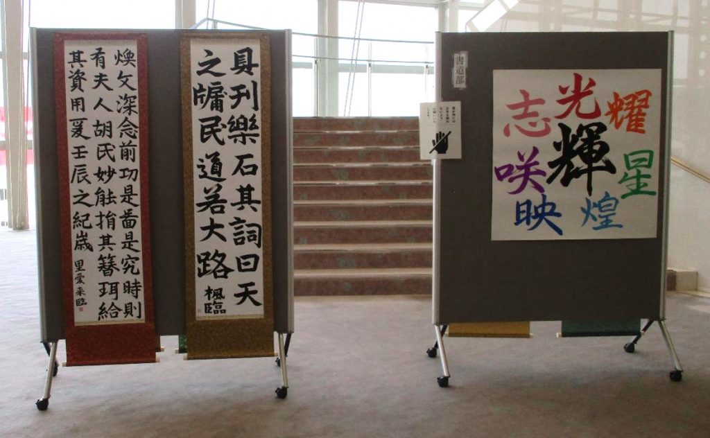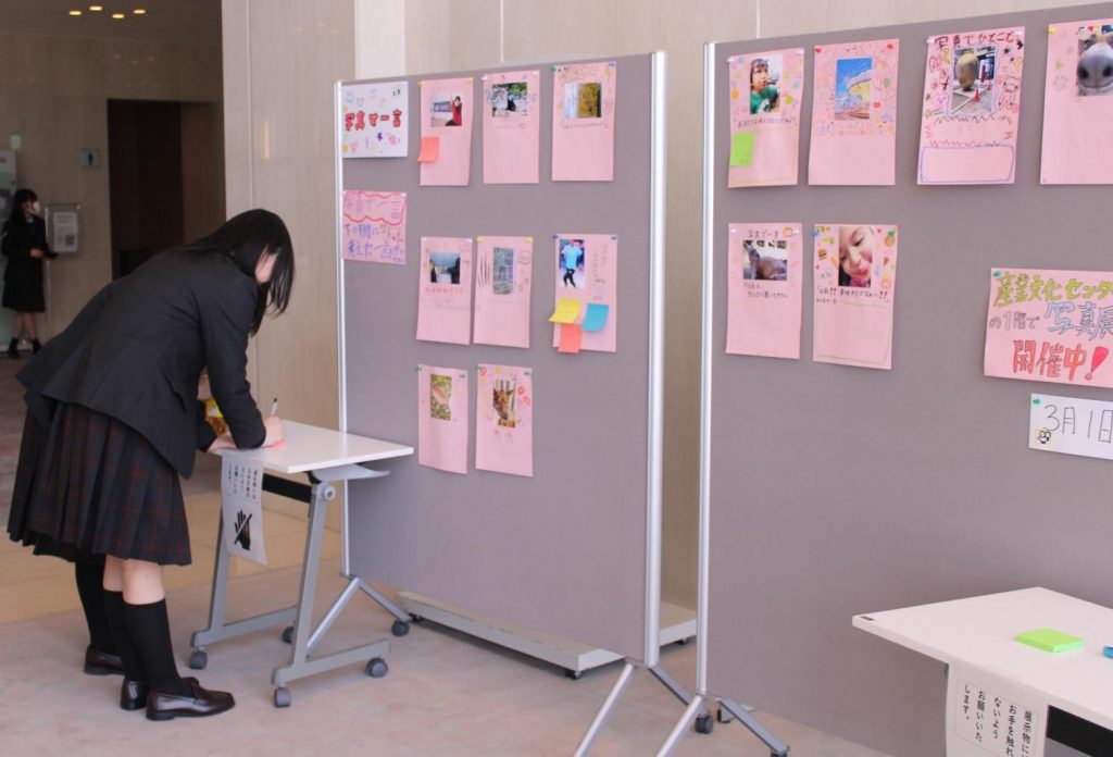 メディアホールや2階ギャラリーでは、美術、保育、服飾プランや国語科・地歴公民科の授業での取組の成果の展示発表があり、多くの生徒が熱心に鑑賞していました。