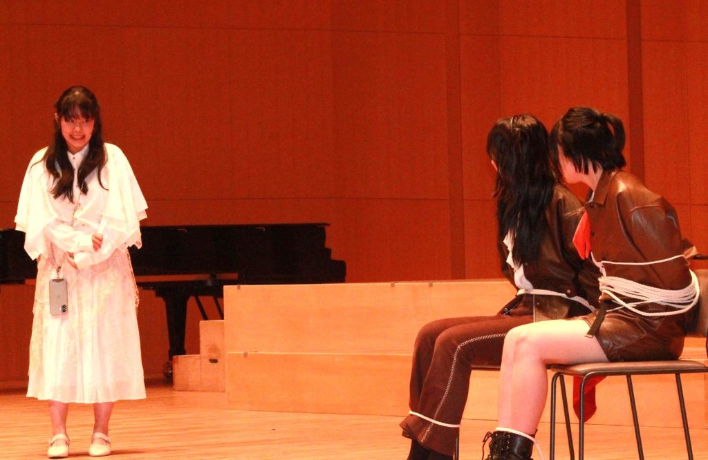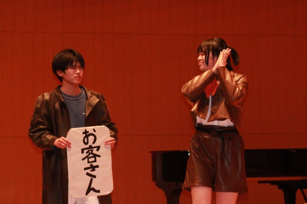 私たち福祉・健康プランは「多様性のある社会にするために」というテーマのもと、自分たちの将来の夢と『8番出口』を掛け合わせた劇を行いました。初めは、どうしたら見ている人に「多様性を尊重する社会を目指すために必要なことは何か」を伝えられるか悩みましたが、プラン全員で2年間の学びを考えて共有したことで、納得いく形に仕上げることができました。改めて福祉・健康プランで得た知識や技術を将来に生かしていきたいと思いました。