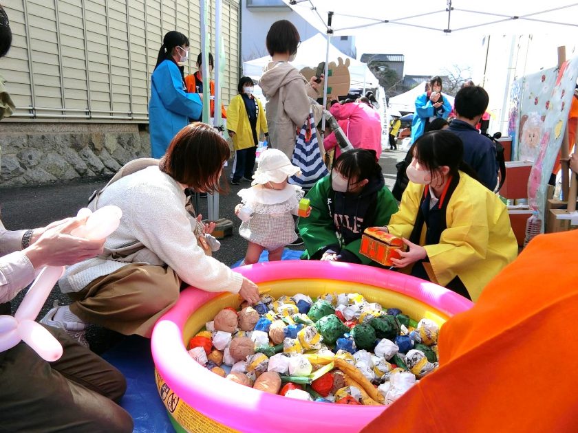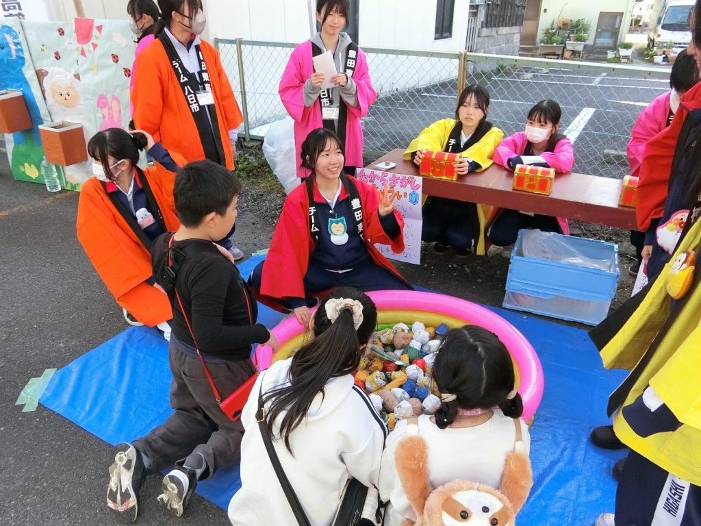 令和8年3月21日(土)、桜町本通り商店街との連携活動「豊田東高校 チーム八日市と遊ぼう!」を開催し、約60名の生徒がボランティアとして参加しました。JRC部、科学部、保育プラン2年生は、日頃の部活動や授業での学びを生かした企画を運営し、生徒会役員や福祉・健康プランの2年生は呼び込みを、4月から保育プランに所属する1年生は2年生の運営を手伝いました。