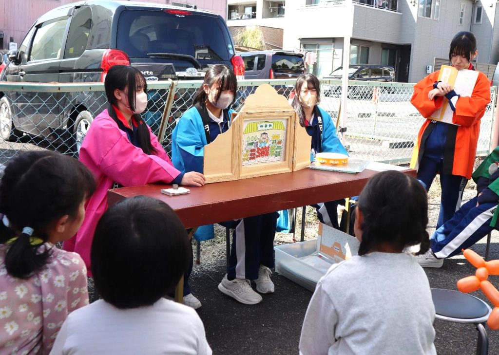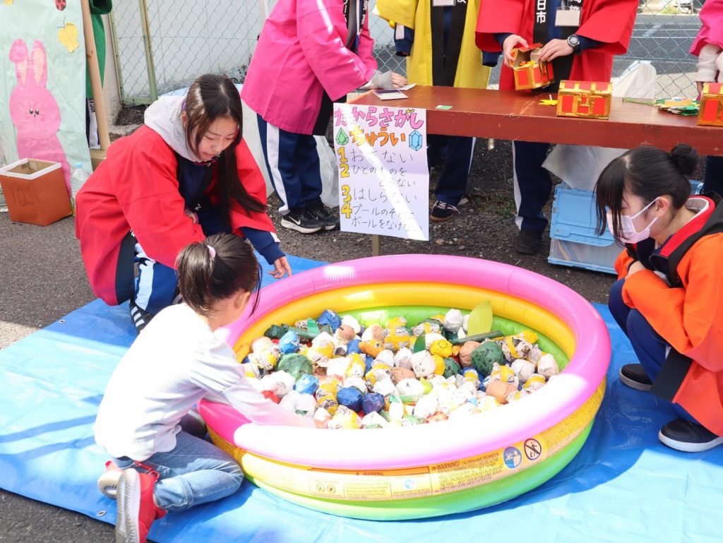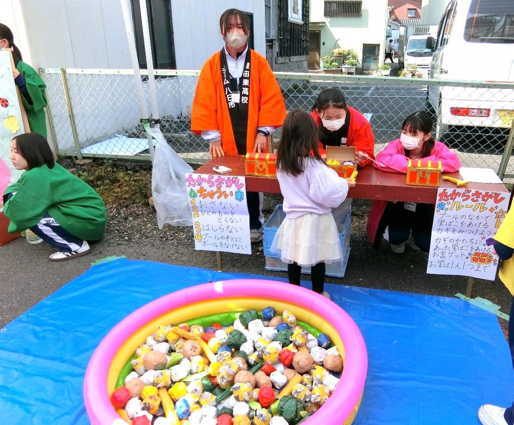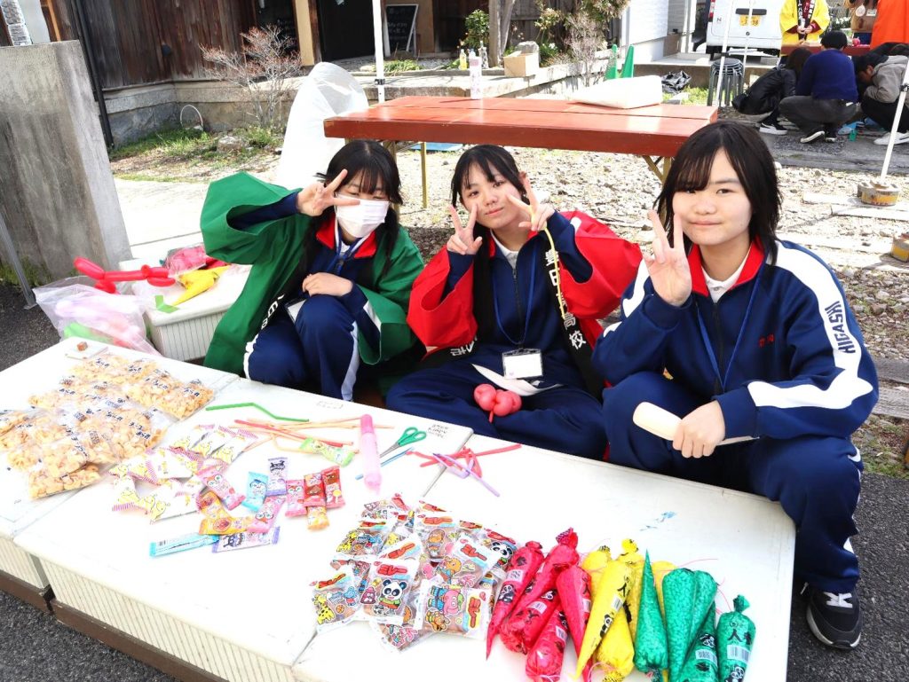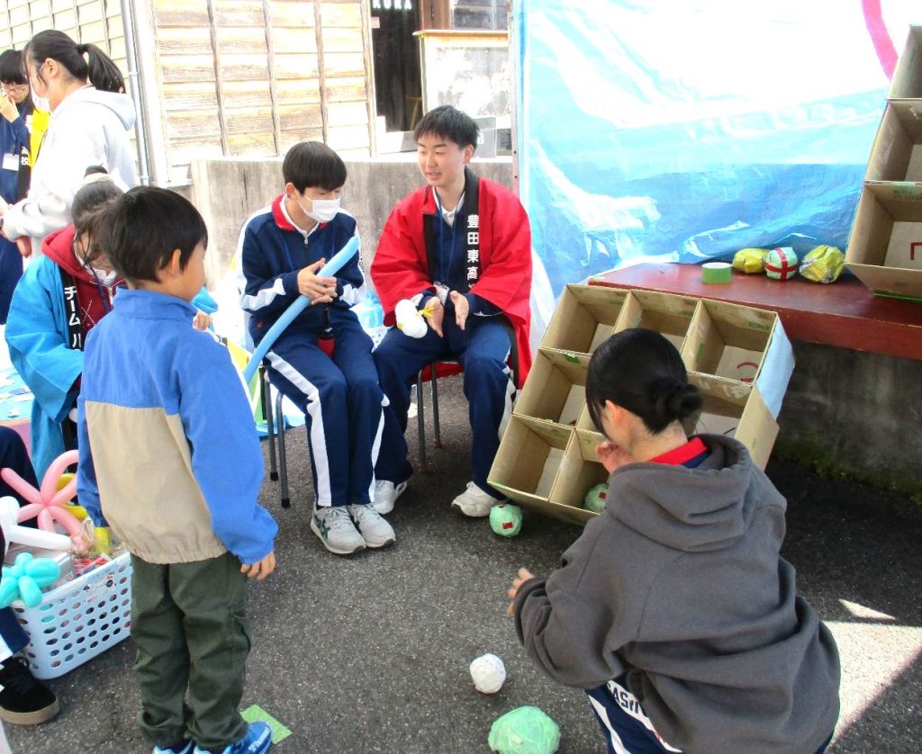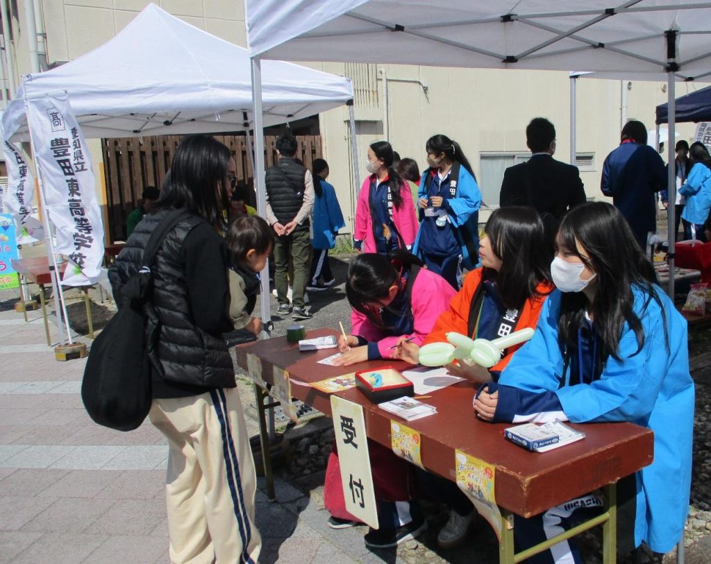 生徒たちは、商店街や豊田信用金庫の職員の方と一緒にテントを建てたり机やイスを運んだりと、声を掛け合いながら活動しました。晴天に恵まれ、多くの家族連れが足を運んでくださり、生徒たちは子どもたちの笑顔や歓声から多くの元気をもらいました。