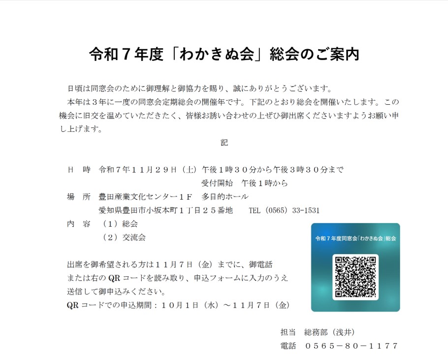 - 2025.10.1 令和7年度「わかきぬ会」総会のご案内